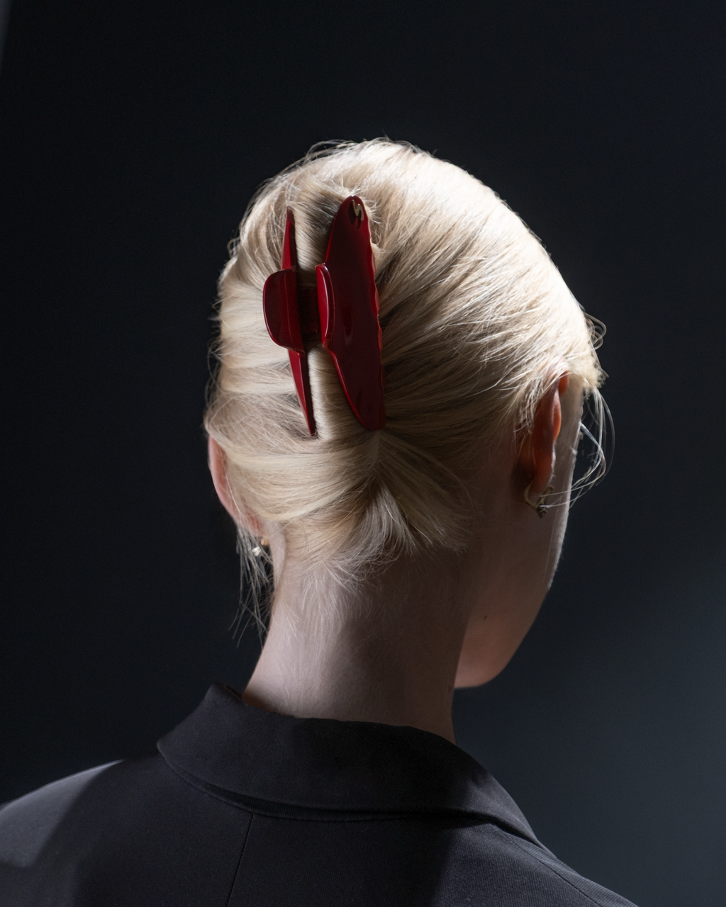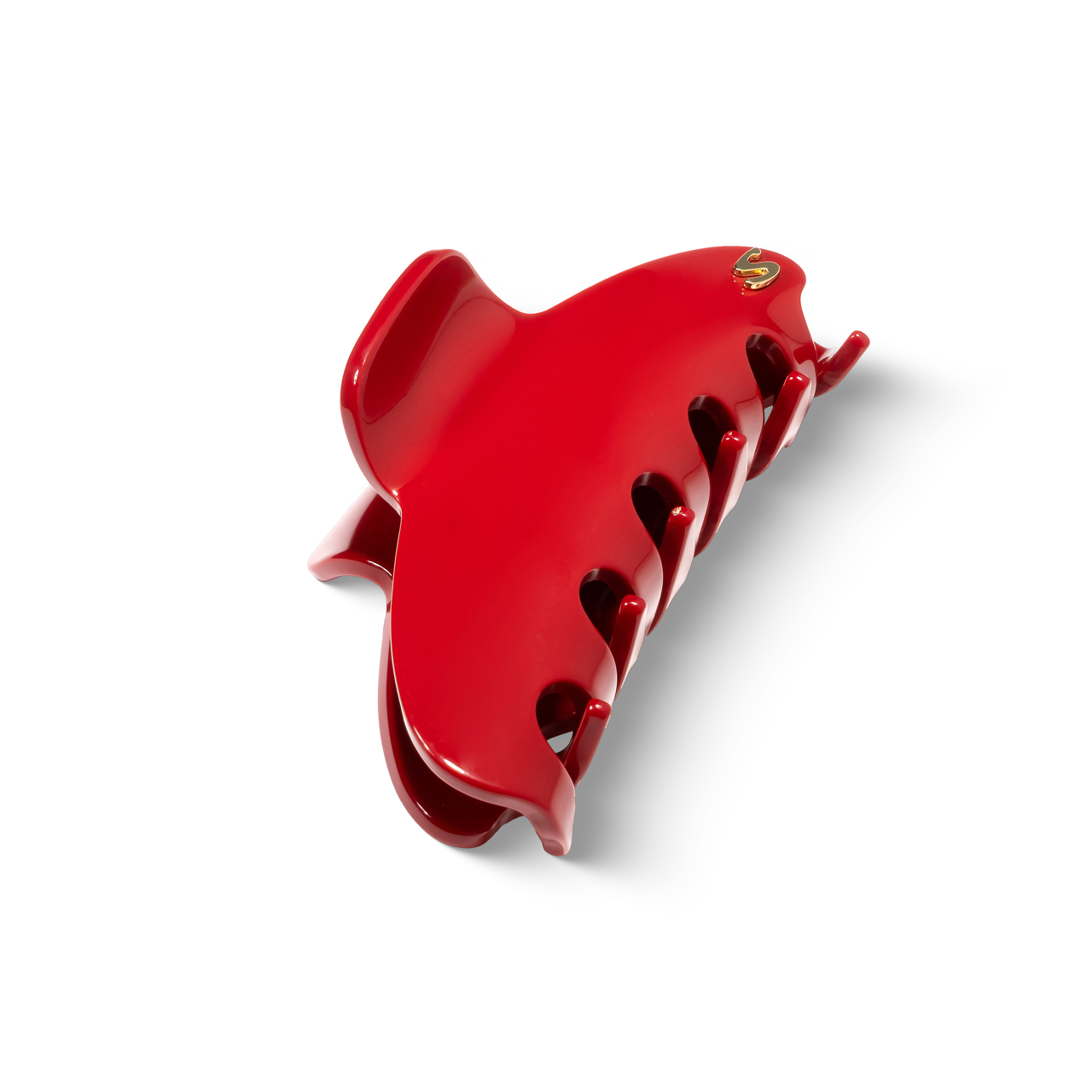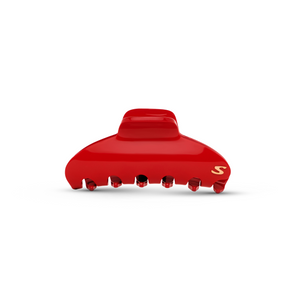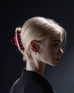 Sculptural and quiet-powerful, the Pince Iconique L frames the head like a piece of modern jewelry. In deep rouge Mazzucchelli acetate and a 14K gold-plated “S”, it turns an updo into a signature.